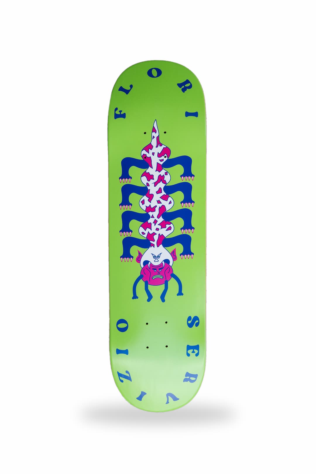 Featuring stunning artwork by Burnbjörn, based in Vienna but one of Florians oldest friends. Crafted in Europe with the highest quality standards. Embrace the Floriservizio spirit and elevate your skateboarding style with this exceptional deck.